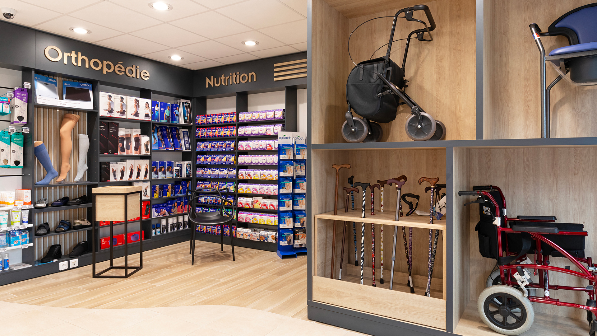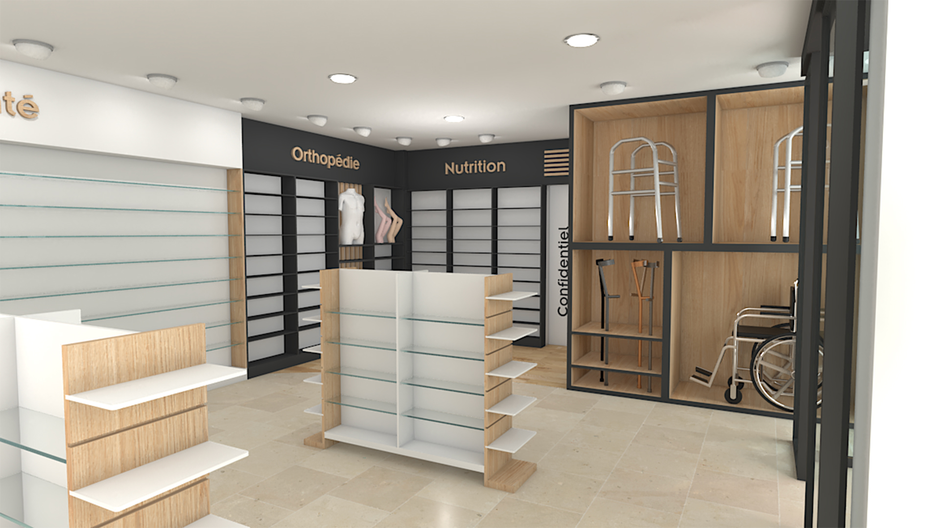 L’agencement a été conçu pour optimiser le parcours patient, avec des zones bien distinctes afin de guider les patients tout en mettant en valeur l’identité de la pharmacie. Un équilibre parfait entre esthétique et praticité.